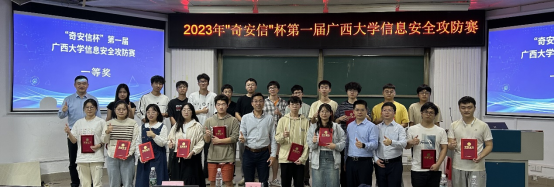 2023年12月12日,2023年“奇安信杯”第一届雷竞技电竞平台官网信息安全攻防赛在雷竞技电竞平台官网成功举办。本次大赛由雷竞技电竞平台官网、雷竞技电竞平台官网信息安全产业学院、广西网络安全人才培养基地主办,并得到雷竞技电竞平台官网信息安全产业学院共建单位奇安信科技集团股份有限公司、广西塔易信息技术有限公司的鼎力支持。雷竞技电竞平台官网常务副院长张振荣教授、自治区党委网信办网络安全协调处副处长伍善旺出席大赛开幕式并致辞。